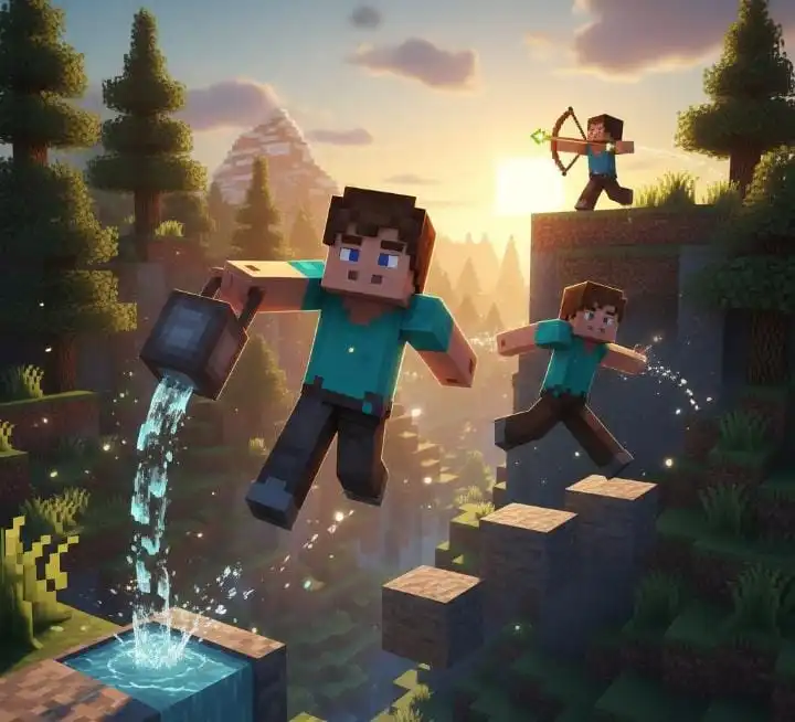 3️⃣ Real-Time Parkour – Navigate tricky terrain with sprint jumps and block placements. Pro players can cross lakes, cliffs, or lava safely.