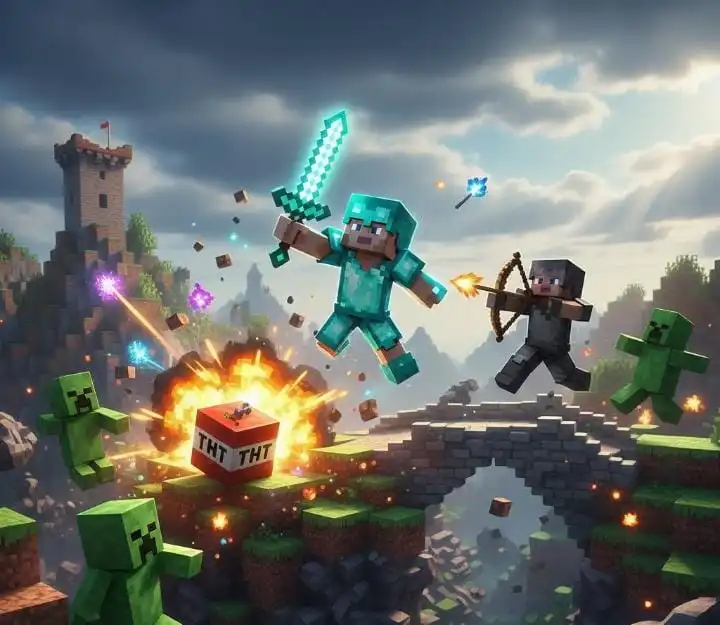 Crafting is the foundation of Minecraft. Learn to craft efficiently — from weapons and armor to advanced tools and gadgets. Collect rare resources like diamonds and enchant items to get the edge in Survival and PvP.